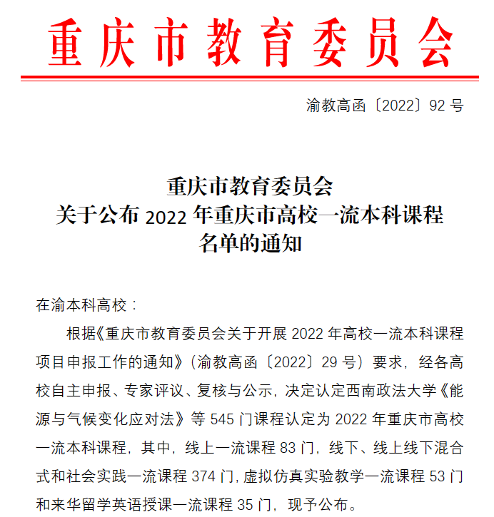 《路由与交换技术》入选2022年重庆市高校一流本科课程