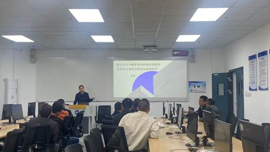 宋苗老师首先对物联网工程专业课程思政建设的现状分析,对PDCA循环在高校课程建设中的应用前景做了关键点的阐述,再针对PDCA各个环节分享了建设的思路,P计划阶段:课程设计与思政目标设定;D执行阶段:教学方法与手段的选择;C检查阶段:课程思政效果的评估与反馈;A改进阶段:优化课程思政建设的策略。会议最后针对PDCA循环在课程思政建设中的问题和下一步的工作计划和系部老师展开深入讨论。