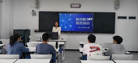 本网讯(文/图 黄俊之) 4月23日下午,amjs澳金沙门线路首页在7教展开了主题为“教学管理规范与评估”的新教师集中培训,本次培训由教务科科长秦旗主讲,学院全体新入职教师参加。