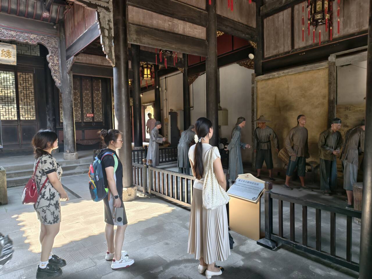 本次活动以实地参观的形式进行。活动伊始,大家来到禹王宫。在这里,同学们无不为禹王宫的宏伟气势所震撼,并认真聆听了关于大禹治水精神以及会馆祭祀的讲解。这让大家深刻体会到中华民族在面临挑战时所展现出的伟大精神,以及为民造福的坚定信念。随后,同学们来到了广东公所(齐安公所)欣赏了这里精美的木雕、石刻艺术品和古色古香的戏楼,感受到了清代商贸的繁荣景象,以及同乡之间互助友爱的深厚文化。最后移步到移民博物馆,馆内展出的丰富文物和复原场景让同学们深刻体会到“湖广填四川”背后的艰难迁徙、重建家园的奋斗历程。