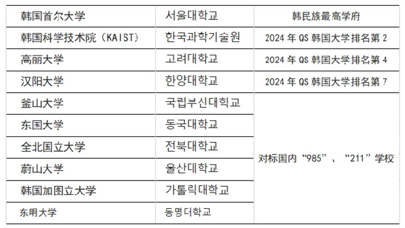 本项目的韩国升学院校皆为中国教育部认可的海外高等院校。(此处罗列部分院校)