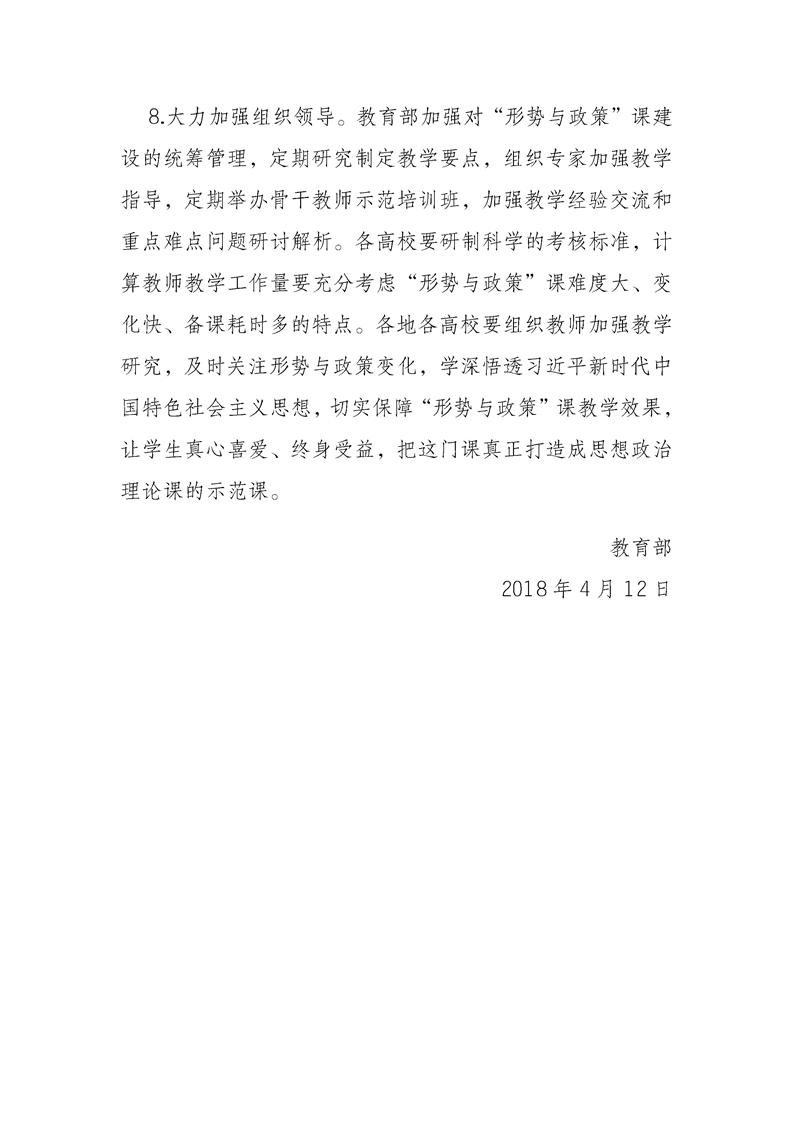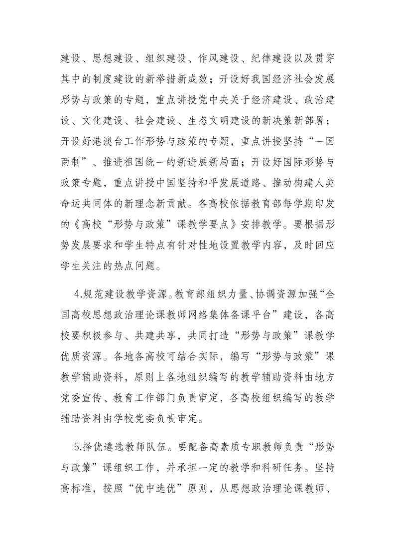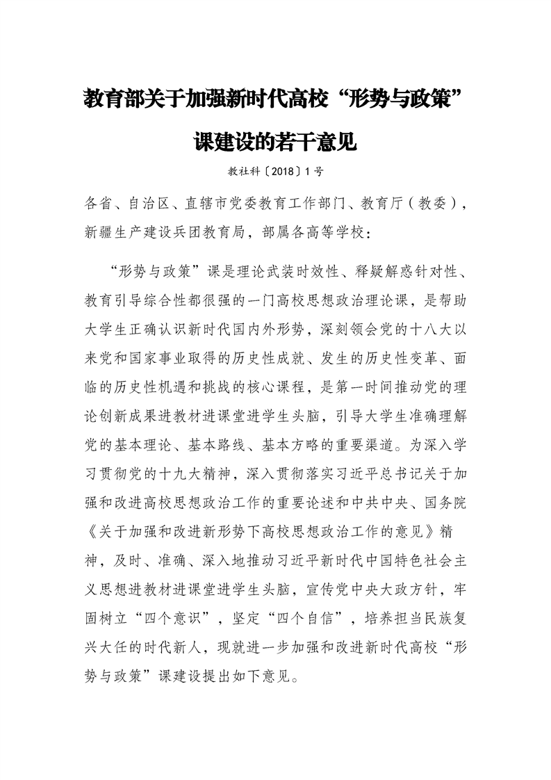 教育部关于加强新时代高校“形势与政策”课建设的若干意见