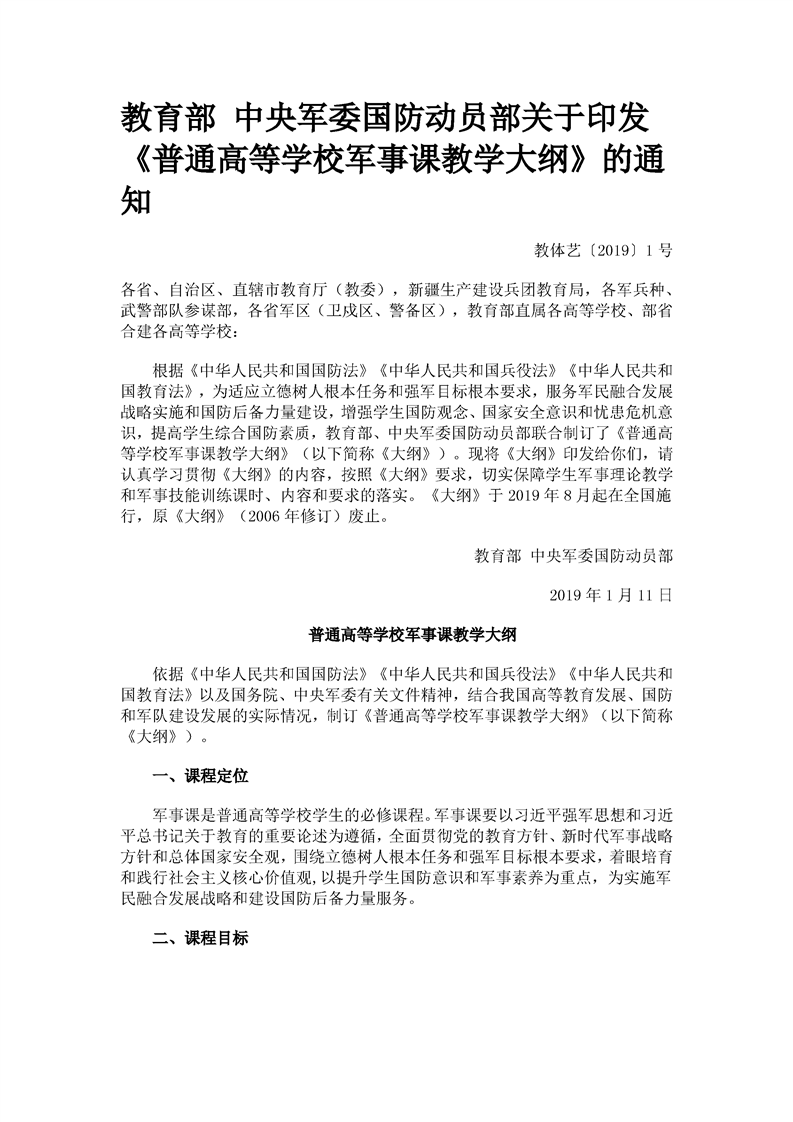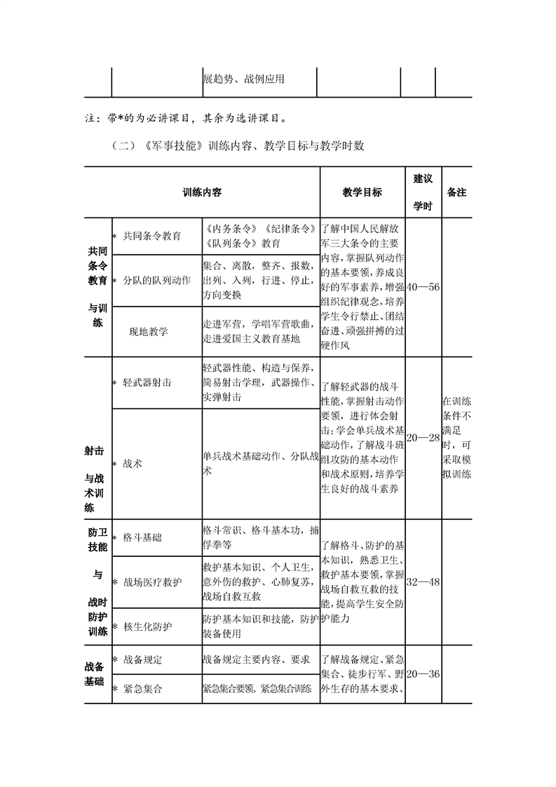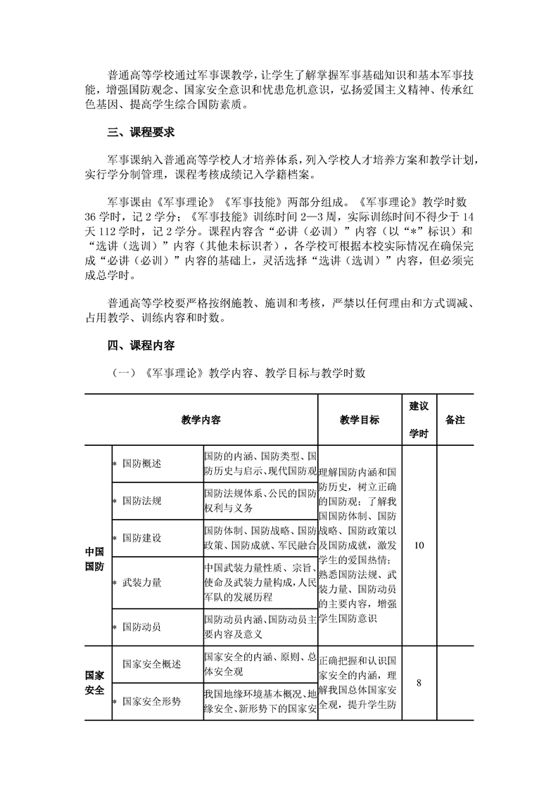 《普通高等学校军事课教学大纲》