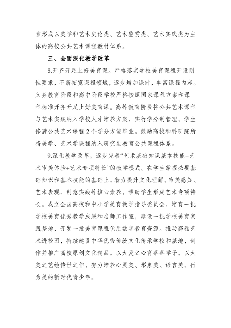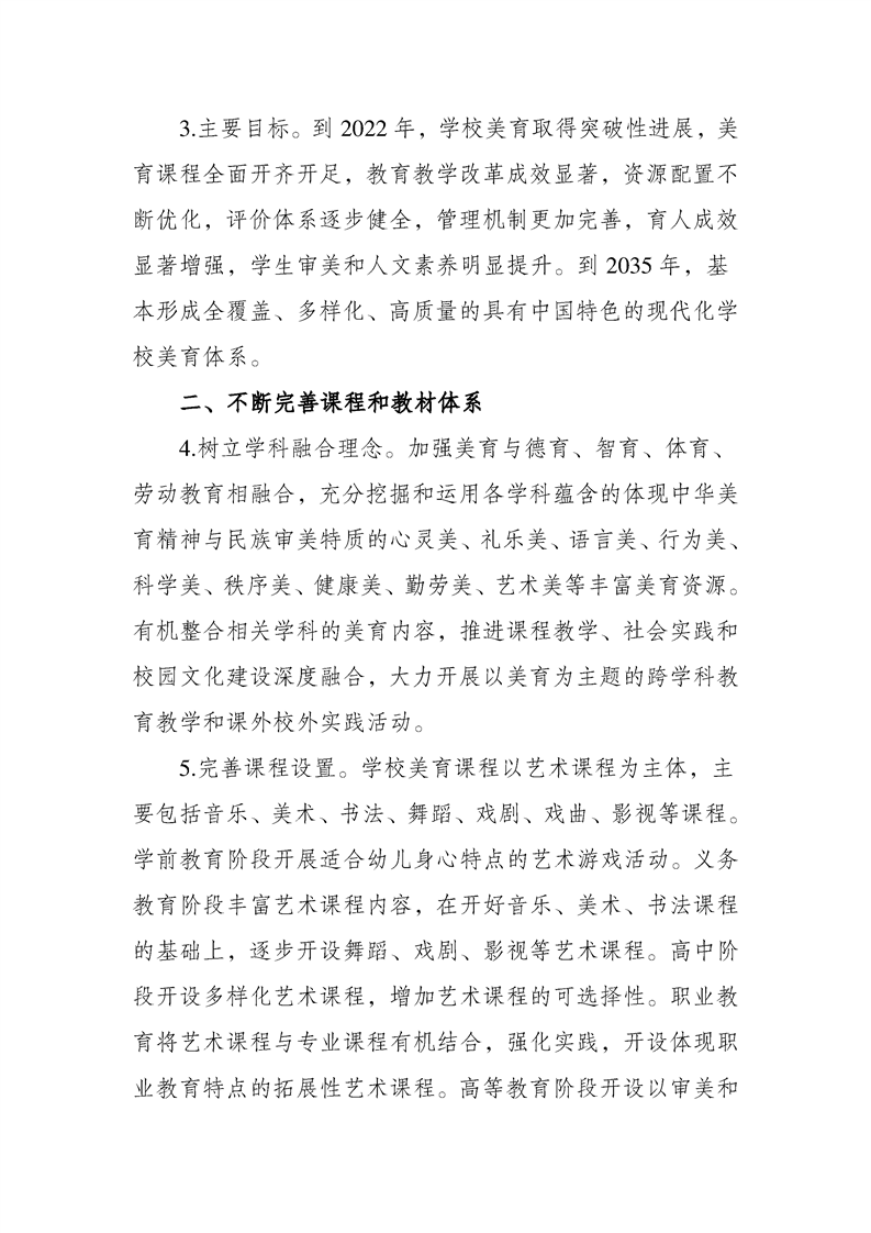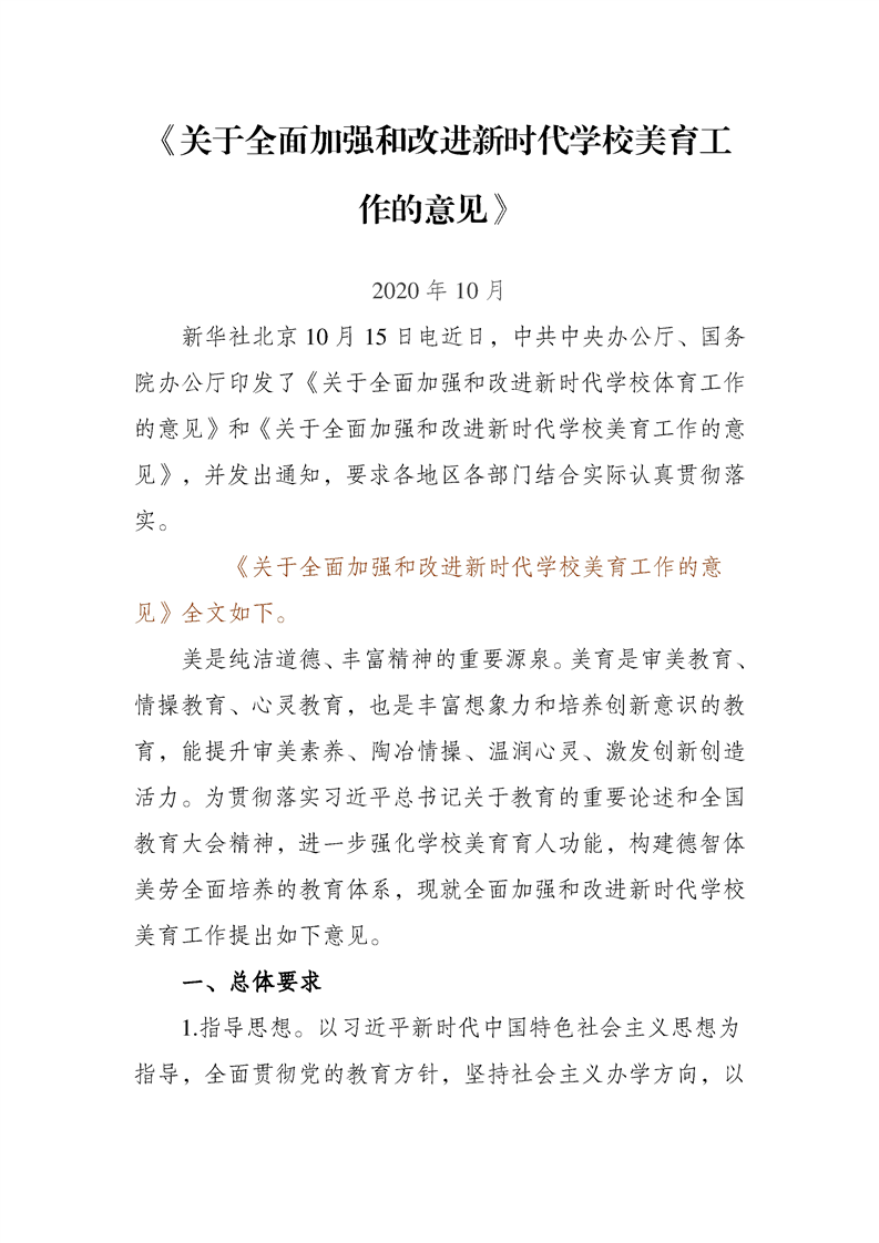 关于全面加强和改进新时代学校美育工作的意见