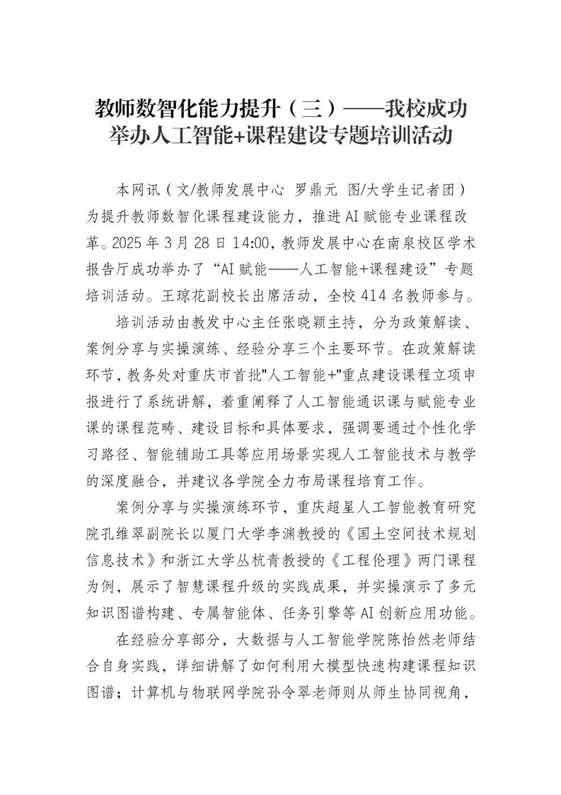 教师数智化能力提升(三)——我校成功 举办人工智能+课程建设专题培训活动