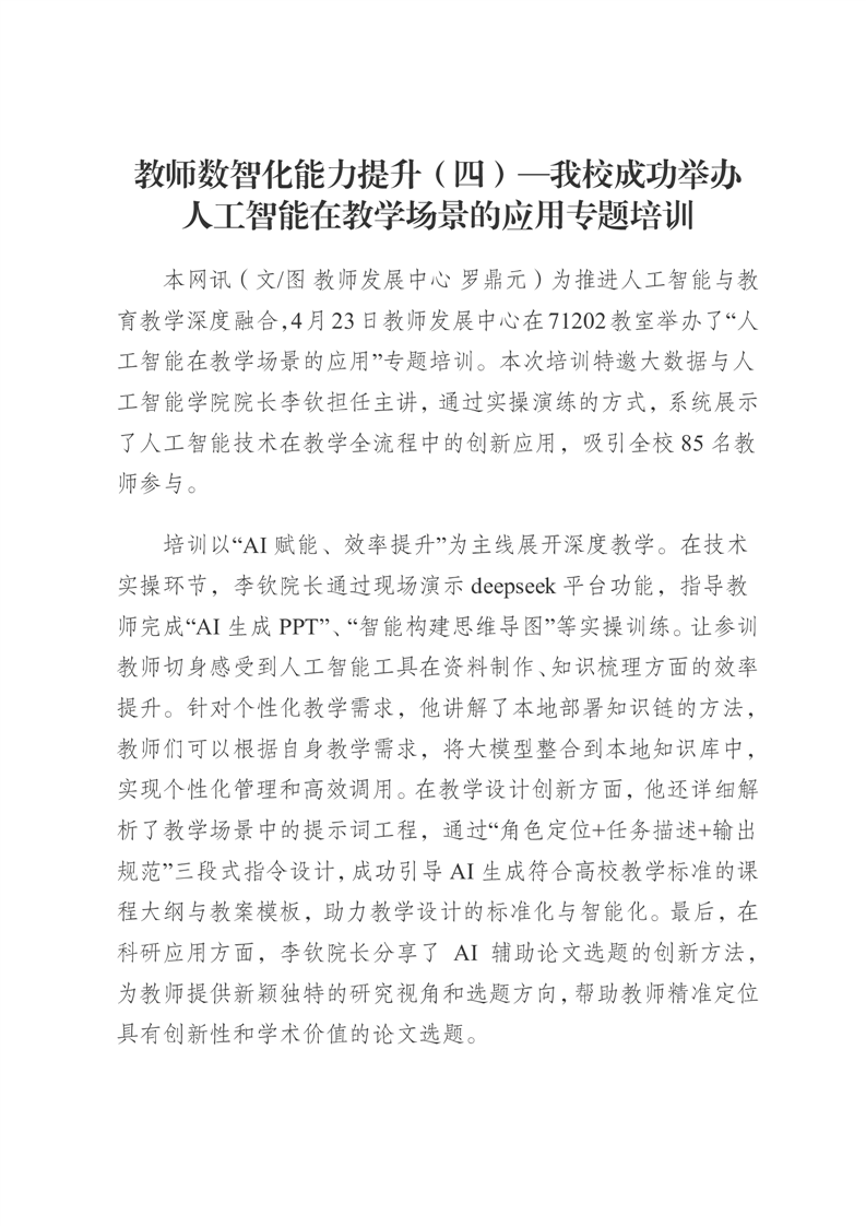 教师数智化能力提升(四)—我校成功举办人工智能在教学场景的应用专题培训