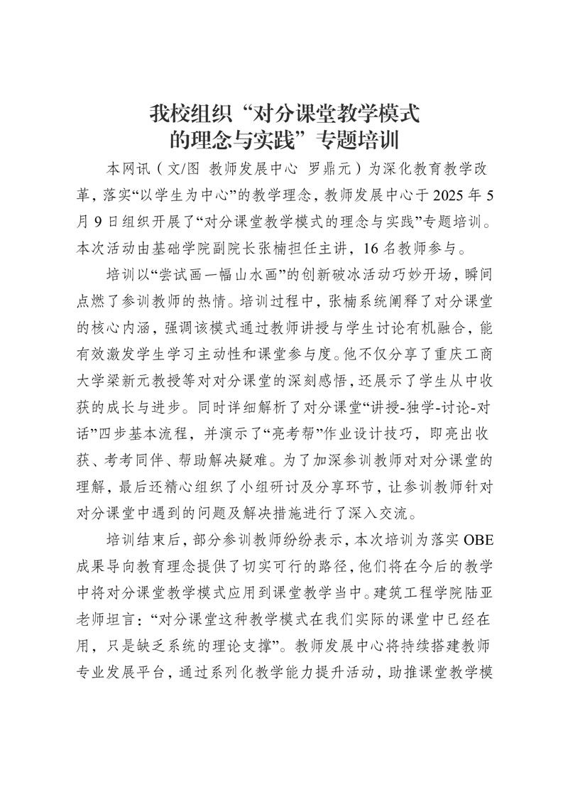 我校组织“对分课堂教学模式的理念与实践”专题培训