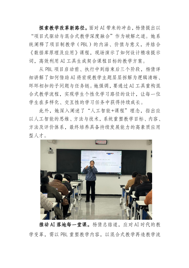 AI重塑课堂新生态——我校举办“AI背景下项目驱动的混合式教学设计”专题讲座