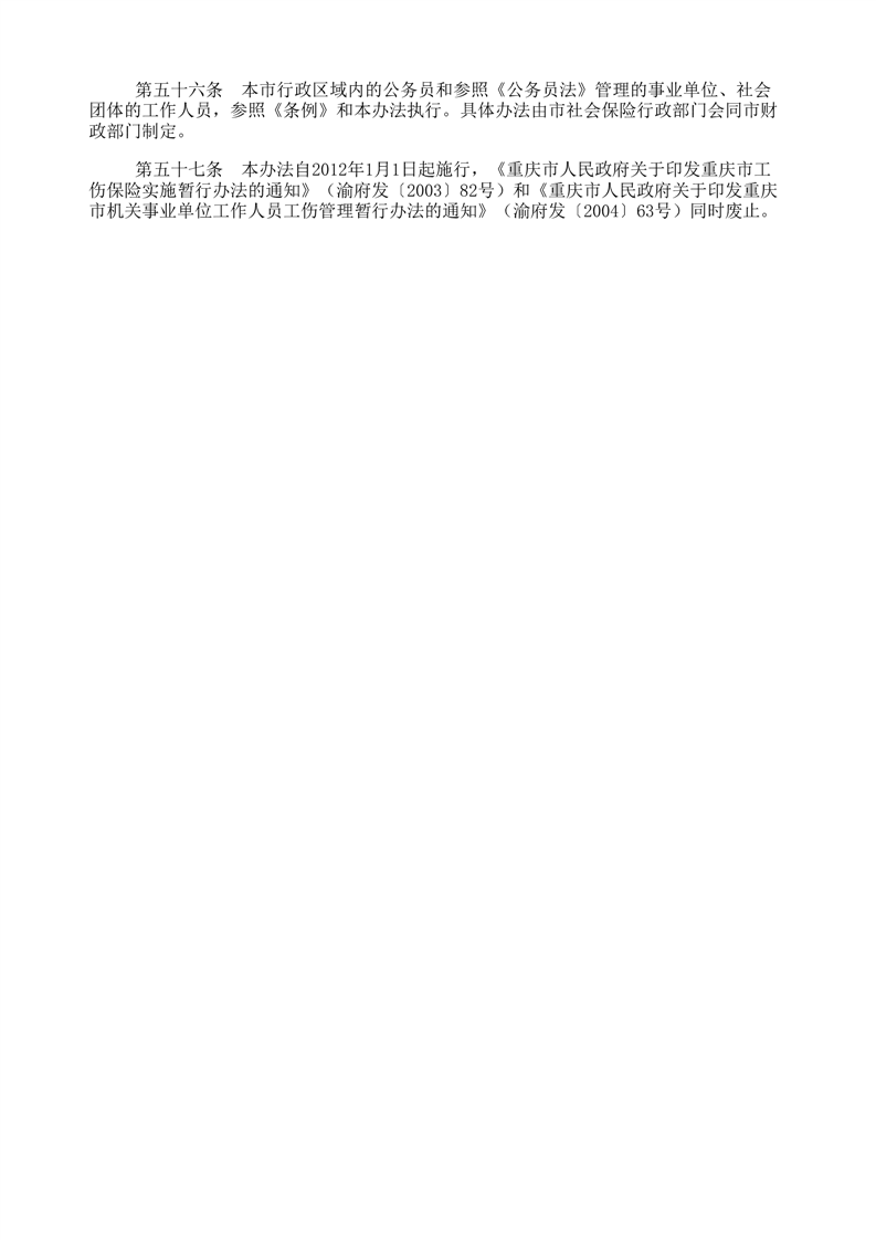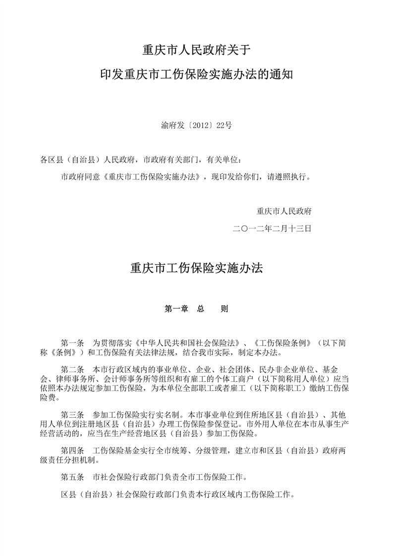 重庆市人民政府关于印发重庆市工伤保险实施办法的通知