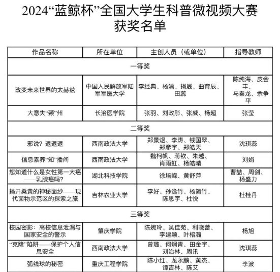 (2025年1月6日,中华文化动漫研发传播中心简讯)在刚刚落下帷幕的由“中国高校影视学会实验教学专业委员会”指导的2024“蓝鲸杯”全国大学生科普微视频大赛中,中华文化动漫研发传播中心选送的科普短片《弧线球的秘密》,从全国100多所高校1000+的作品中脱颖而出,获得全国三等奖。该片是由中心李波老师的N1工作室设计制作(22级动画专业学生参与制作),N1工作室以老师(李波、陈银伟、孙琳)带领学生共同研发科普短视频为主要特色,这是中心2024年的一次尝试与收获。
