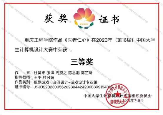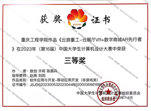 荣获二等奖的是陈彬、陈俟伶老师指导的学生袁钊团队的参加作品“碳寻气迹-三位一体碳排放监测系统”。荣获三等奖的分别是:赵商、刘阳老师指导的学生敖创团队的参赛作品“云游重工-云展厅VR+数字商城AR先行者”;王平、石磊老师指导的学生廖娅婷团队的参赛作品“药途”和王平、桂风娇老师指导的学生杜昊阳团队的参赛作品“医者仁心”。