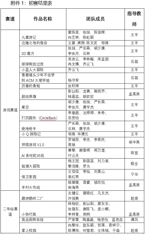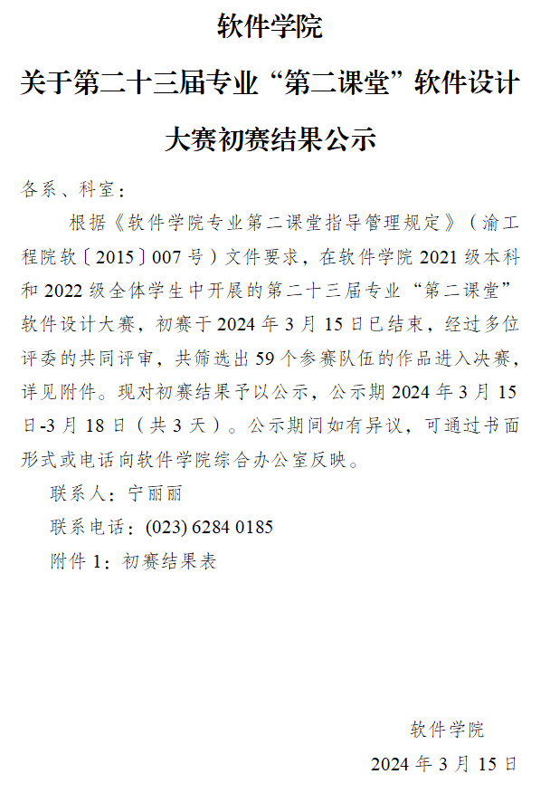软件学院 关于第二十三届专业“第二课堂”软件设计大赛初赛结果公示