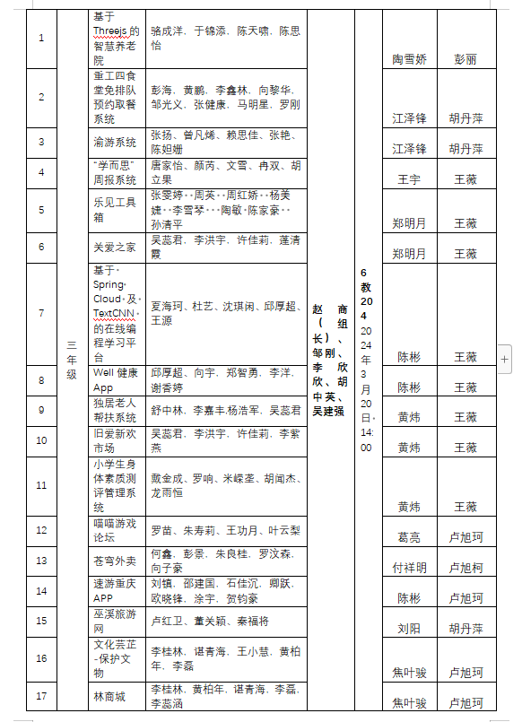 根据《软件学院专业第二课堂指导管理规定》(渝工程院软〔2015007号)文件要求,在软件学院2021级本科和2022级全体学生中开展的第二十三届专业“第二课堂”软件设计大赛,决赛将于20243201400620162036204三个教室举行。