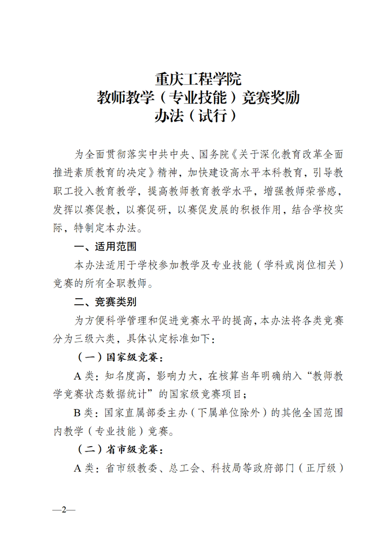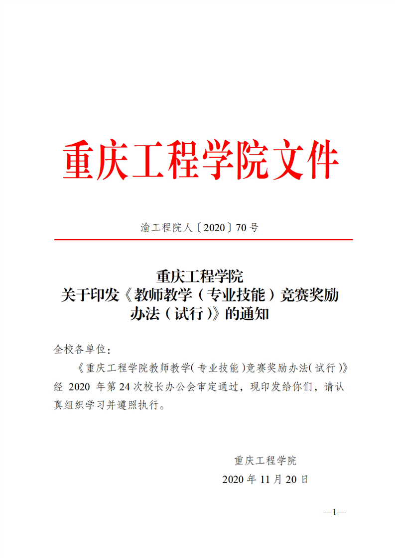 > 关于印发《教师教学(专业技能)竞赛奖励办法》(试行)》的通知