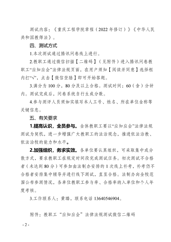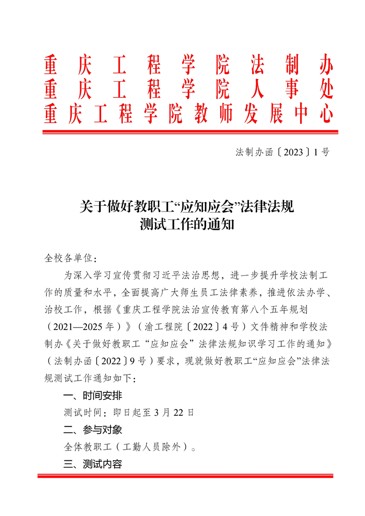 > 关于做好教职工“应知应会”法律法规测试工作的通知