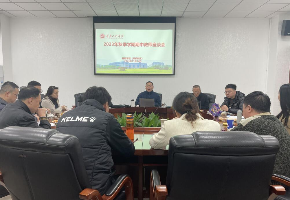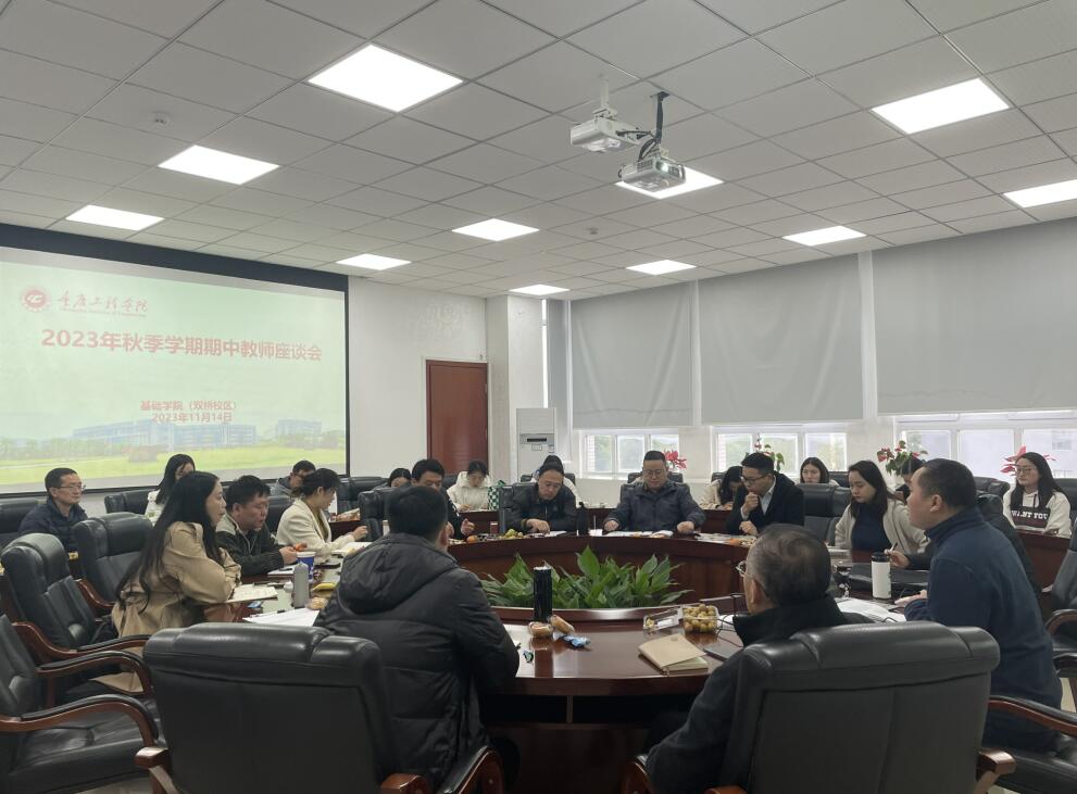 (文/图 基础学院 杨佳丽)2023年11月14日下午,基础学院在双桥校区办公楼三会议室召开了2023年秋季学期期中教师座谈会。基础学院党总支副书记、副院长张楠、副院长严伟、校级督导陈冰、教学事务办公室副主任吴诗奎,以及各教研室教师代表参会。会议由副院长严伟主持。