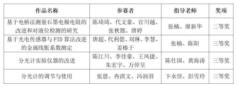 此次比赛,由基础学院牵头,教务处协调配合下,进行精心组织。在长达5个多月的备赛竞赛过程中,竞赛领队李?老师积极协调各方面的备赛工作,张楠、廖新华、陈仕国、卞永佳、陈阳、彭雪玲、黄海涛、刘燕月等指导老师投入大量精力,给出许多有益的指导建议,帮助同学们完善作品。同学们积极交流,团结协作,认真完善参赛作品,展现出了我校学子扎实的物理基础和较高的专业技能水平,以及精益求精、勇于创新的优秀品质。