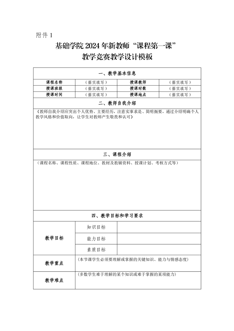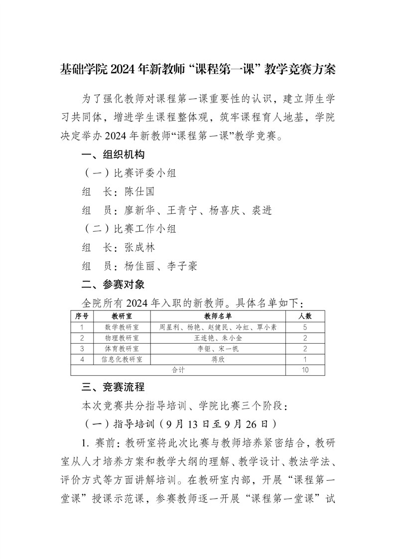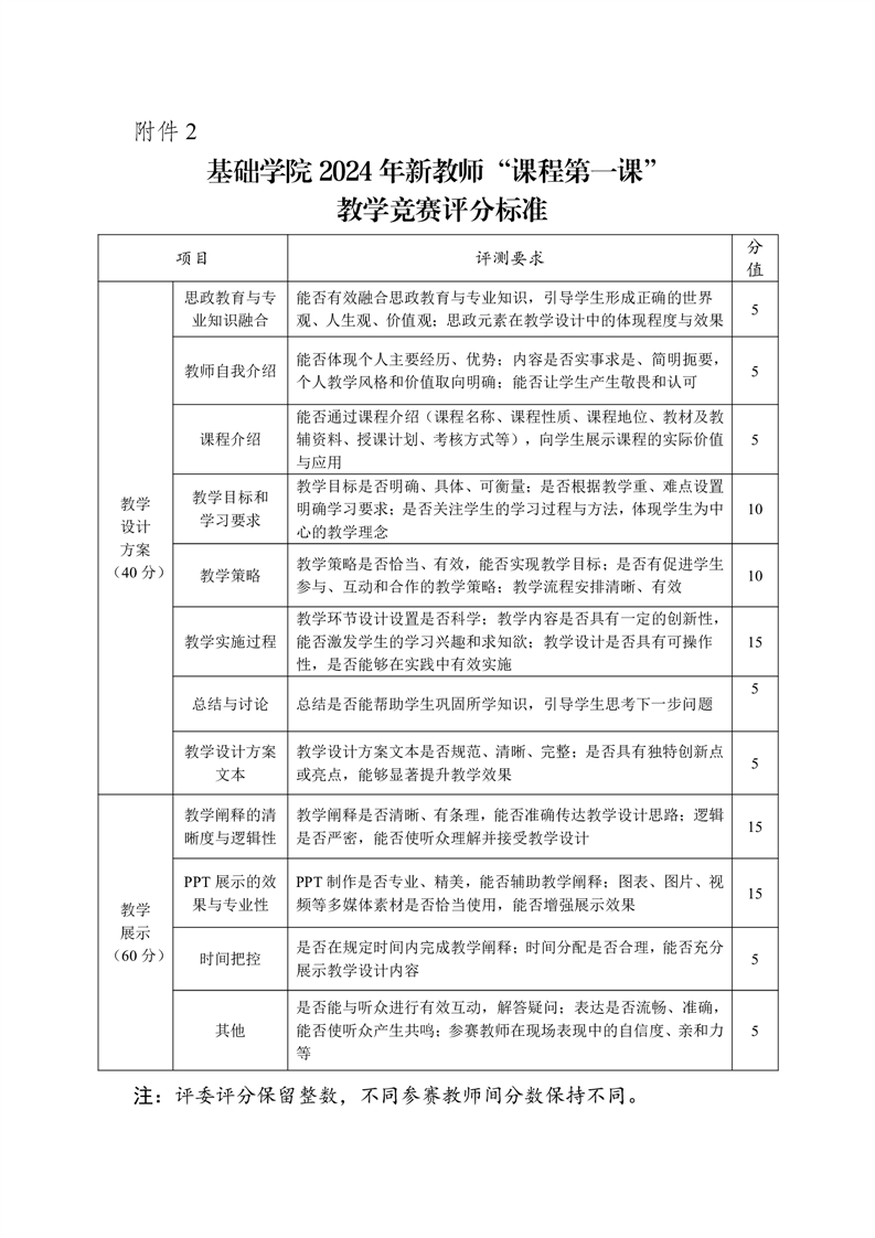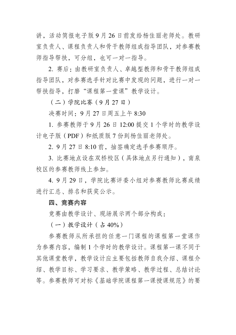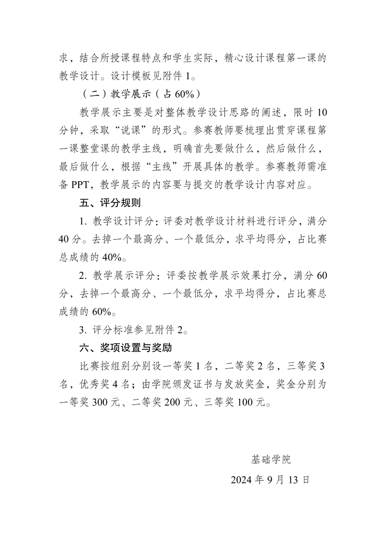 > 基础学院2024年新教师“课程第一课”教学竞赛方案