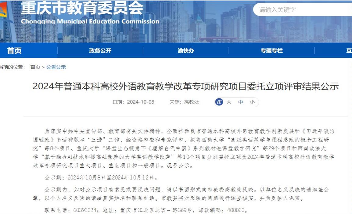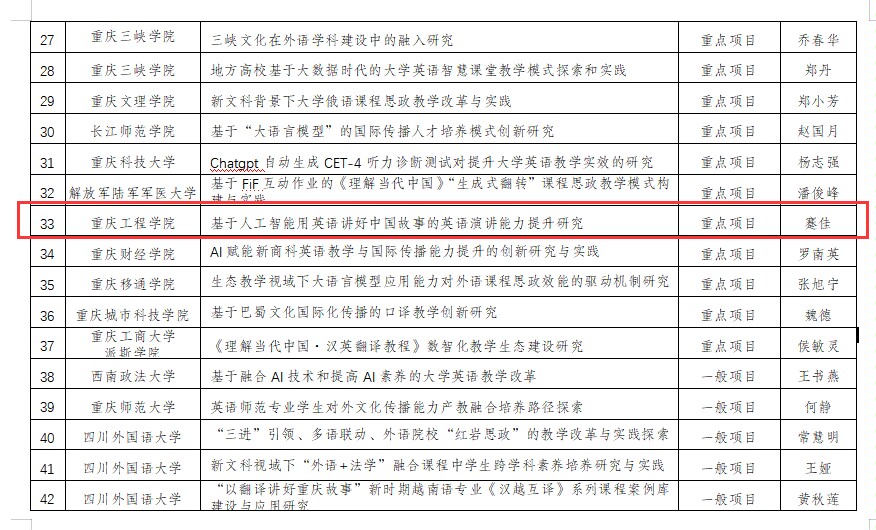 我校2个项目获批2024年重庆市外语类教改项目立项
