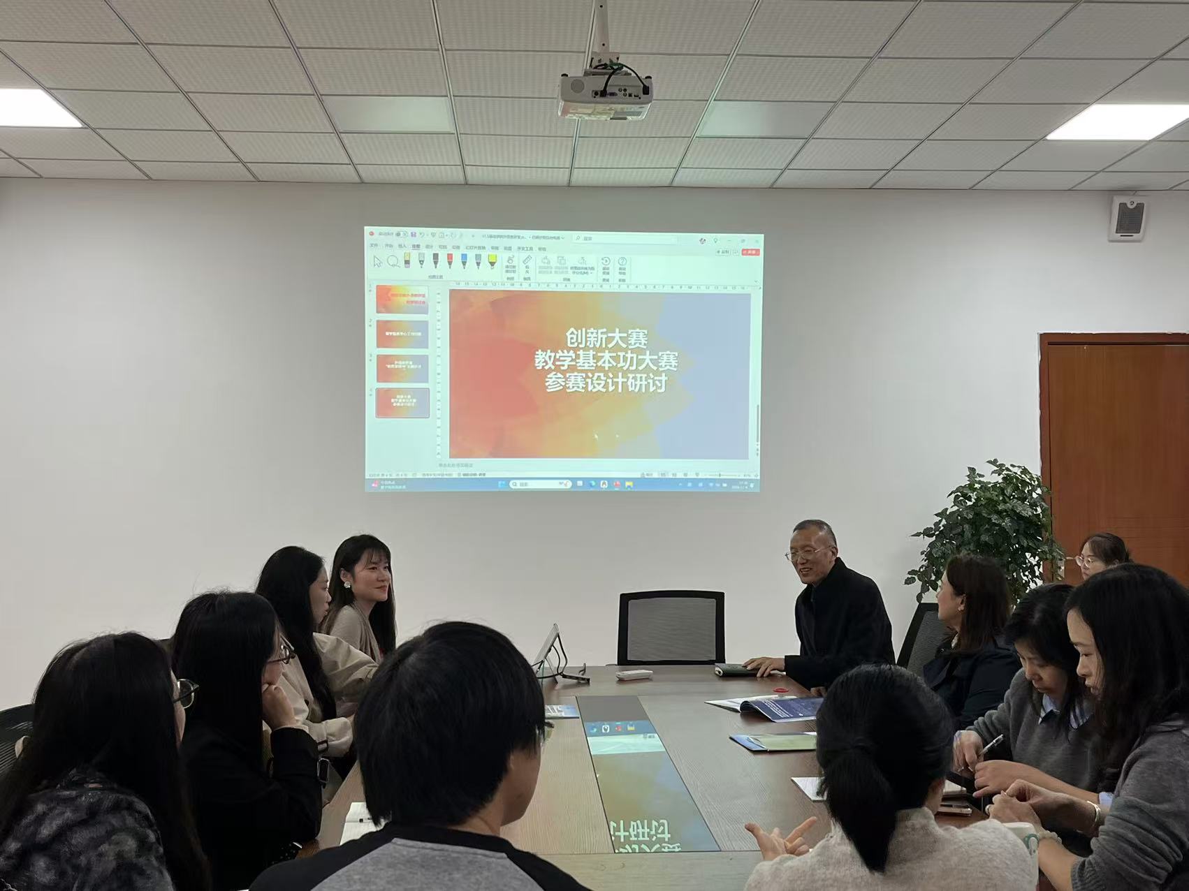 张主任介绍本次会议目的,强调创新大赛和教学基本功大赛对于教师发展和提升外语教学质量的重要意义,希望通过本次研讨,能够集思广益,为参赛设计出谋划策。会议聚焦创新大赛与教学基本功大赛参赛设计讨论。