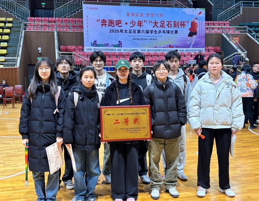 (文图/基础学院 敖丽)近日,由大足区教委、文化和旅游发展委员会联合主办的“奔跑吧·少年”大足石刻杯第六届学生乒乓球比赛在区体育中心篮球馆举行。我校学子团结协作、顽强拼搏,凭借出色的球技和坚韧的毅力,荣获甲组女子团体第二名、女子团体总分第二名,纪新令、曾燕玲两位同学分获单打第五、第六名,带队老师敖丽获评“优秀教练员”。