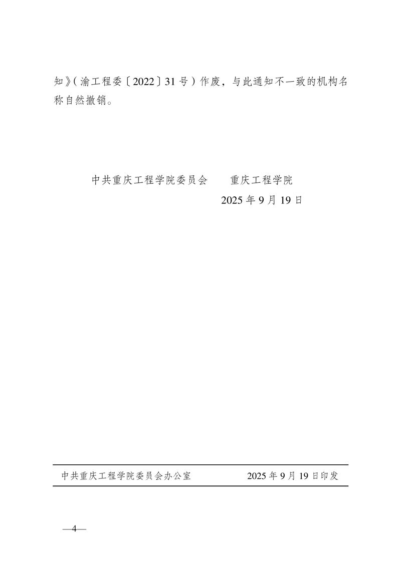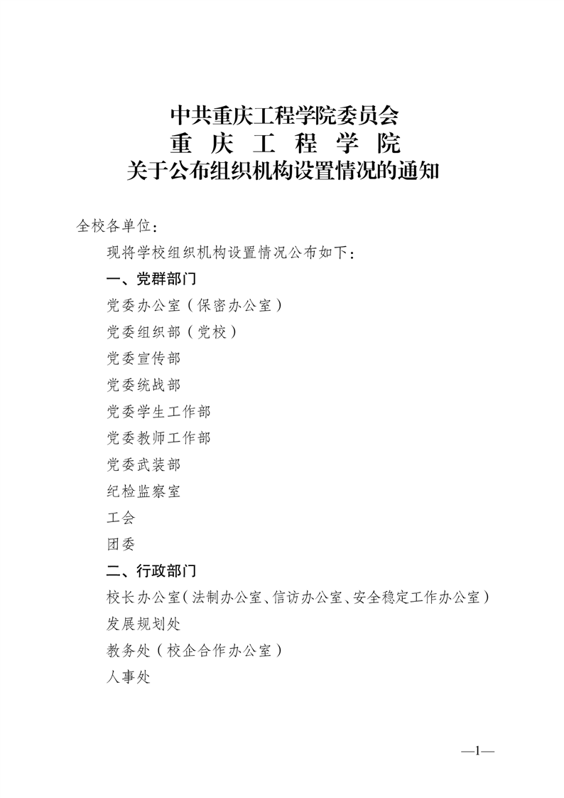 中共重庆工程学院委员会 重庆工程学院关于公布组织机构设置情况的通知